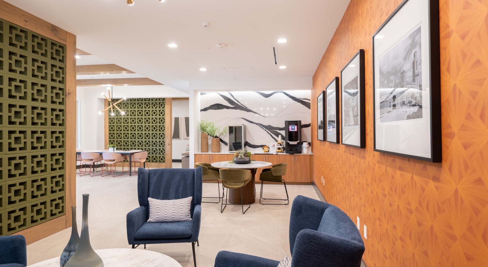 • Resident Lobby & Coffee Bar at The Harden Senior Apartments Fort Worth